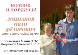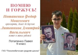 Помним… 08.05.202208.05.2022 Admin Отвага, смелость, стойкость и Победа! За это всё я памятью держусь. Пусть смотришь только на меня с портрета, Тебя, мой прадед, помню и горжусь!